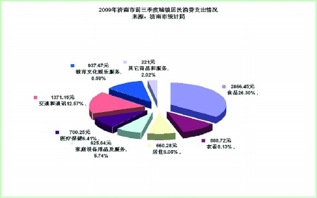 2009年济南市前三季度城镇居民消费支出情况。