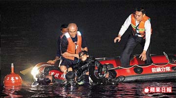 警方与台湾港务局消防队、高雄市消防局救难人员出动救生艇,并派潜水员潜入海中抢救,由于海水温度仅约7℃,加上车子沉入6米的海底、车头插入1米的烂泥中,4人分别挤在车后座,抢救困难。