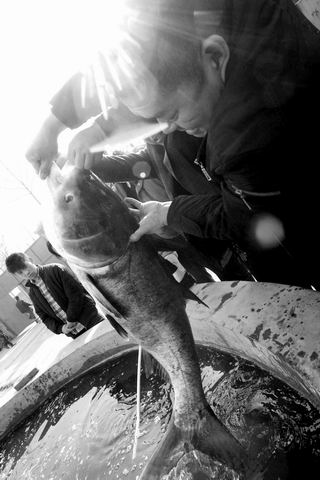 建库40年首次起鱼的消息见报后,市民争看新鲜 尖岗水库授人以“娱”