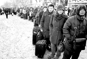 本报讯 (记者孙杨 夜线报道组)今天上午9时许,通往首都机场的机场快轨停运,数百名乘客在东直门外寻找其他交通工具。