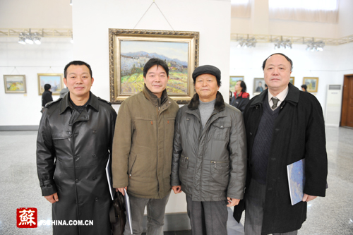 左起:南艺美术学院书记李志强、张玉彪教授、著名画家丁兆成、李荣洲教授