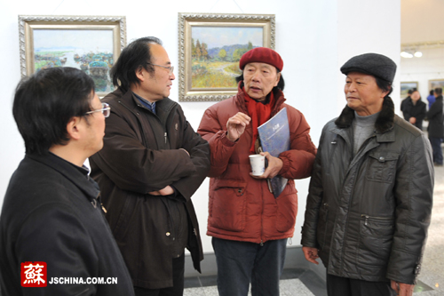 左起:省文联动漫协会秘书长包兴源、省美术馆副馆长金田、李荣洲教授、原江苏省美术馆馆长朱葵