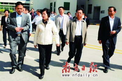 孙春兰(左二)一行在省、市、区相关领导陪同下,参观深圳市龙岗区联创公司。资料图片