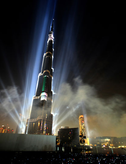 世界第一高楼“哈利法塔”于当地时间一月四日晚八点(北京时间五日凌晨)正式竣工启用。然而在盛大欢庆的背后,迪拜债务危机的阴影仍然在迪拜回荡。