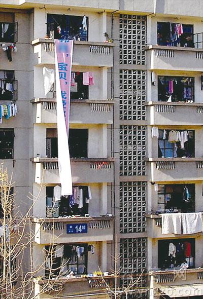 云南民族大学一女生宿舍悬挂6米条幅示爱