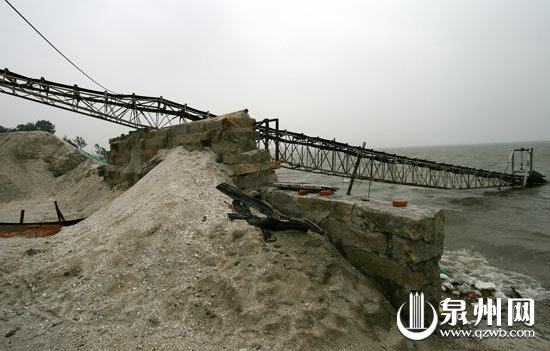 破碎的海堤,残断的条石,在海浪一轮又一轮的拍打下,仿佛在无助地哭泣:偷沙的人们,你们这是在害了自己,也害了别人。