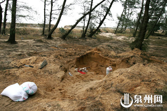 海岸上树林的沙子也被挖了