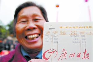 本报讯 (记者庞晓茗、邓柱峰 通讯员卢建华、黄猛高)从省委常委、副省长肖志恒手中接过存折,睇住大大只的黑字印着农保80元,68岁的木棉村村民陈丽群笑得合不拢嘴。