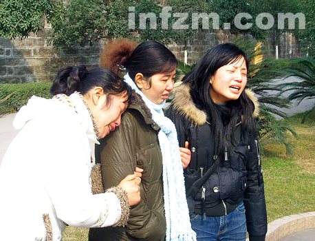 亲属见不到死者的遗体,只能在殡仪馆外痛哭。 图/刘伟