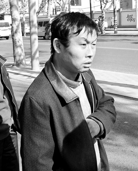 王有培神情恍惚,将断指的左手藏到衣服里 谢伟 摄