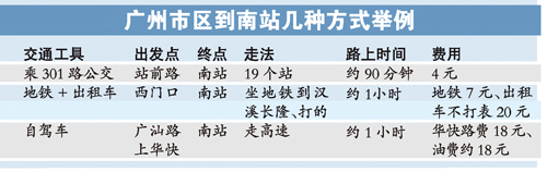 相当大部分人会选择坐公交前去广州南站。记者昨日实地体验发现,如果从中山二路先乘公交到站前路,再坐从这里始发到番禺市桥的301路公交去南站,差不多要两个多小时。