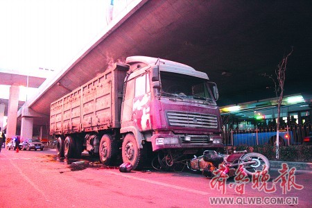 两骑车男子被卷入大货车轮下 滑行七八米后才停下,两人被严重碾伤