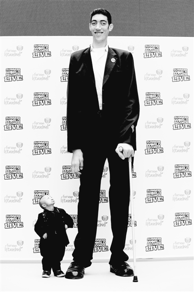 最高最矮同台亮相 汉网-长江日报 2010.01.1502:18 关注 下图:14日,土耳其伊斯坦布尔,世界最高的人苏尔坦·科森与世界最矮的成年人何平平握手,一起为吉尼斯世界纪录现场秀做宣传。东方IC供图