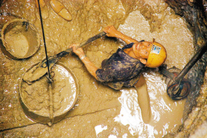 尽管做了充分的思想准备,但深入地下隧道后,他仍然被眼前的场景吓了一跳。空中是泥土输送带,大量的污泥不断往下面落;隧道的温度由于受通风不畅及机器运转发热的影响,气温高达40度左右。此外,空气非常的稀薄,让人有窒息的感觉。