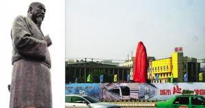 福州地铁则徐广场站施工 林公铜像被红布包裹相当雷人