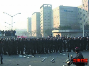 目击者称,15日早上7时15分许,数百员工聚集于厂内,并打着“黑厂,还我年终奖”口号,向公司抗议,并要求解决公司日常管理中的劳资纠纷问题。公司报警后,苏州工业园区公安分局警察赶到现场维持秩序。