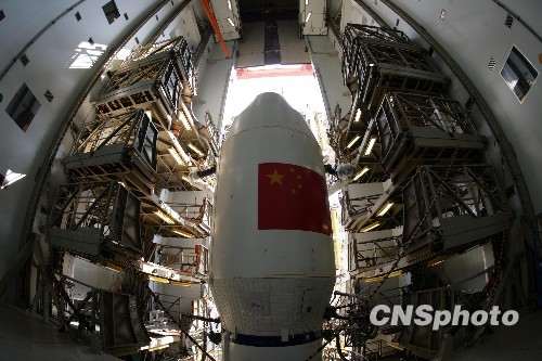 2010年1月17日凌晨,中国成功发射第三颗北斗导航卫星。图为发射前星箭组合体在发射场联合测试。 中新社发 杜财 摄
