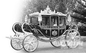 本报讯 据《新快报》报道, 24颗钻石、130颗蓝宝石、400多片金叶,历时6年打造的2.5吨重黄金婚车给威廉王子准备好了,威廉王子将在2012年夏天的伦敦奥运会期间举办盛大婚礼。据报道,现年27岁的英国王子威廉和他27岁的女友凯特·米德尔顿相恋长达6年,两人有望在2012年夏天的伦敦奥运会期间举办盛大婚礼。