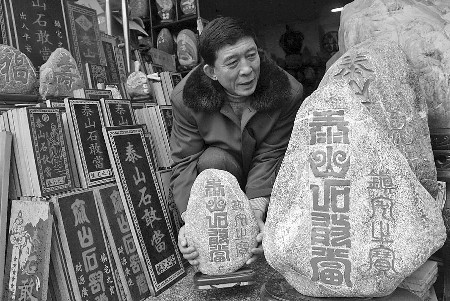 泰山石敢当成为旅游纪念品的主角。陈琳摄