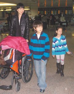 中新网1月21日电 据台湾《联合报》报道,国民党秘书长金溥聪的妻子周慧婷与一双儿女结束5个月的华盛顿之旅,20日清晨返抵台湾。由于周慧婷之前才摔伤,一路上还得照料2个也都受伤的孩子,一到桃园机场,周慧婷带着孩子上车走了,让赶来接机的金溥聪扑了空。这对糊涂夫妻还得靠记者帮忙传话,连周慧婷也笑说:“我不知道他要来接,他可能是想给我惊喜。”