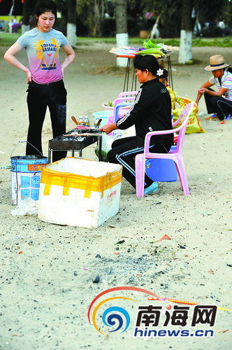 冬日的三亚,阳光灿烂,充满温暖。各地的游客纷至沓来,在这个度假天堂里感受着热带滨海城市的美丽与舒适。然而在美丽的三亚湾海滩,随意摆开的数家烧烤摊却是大煞风景,把本来洁净的海滩搞得脏乱不堪。
