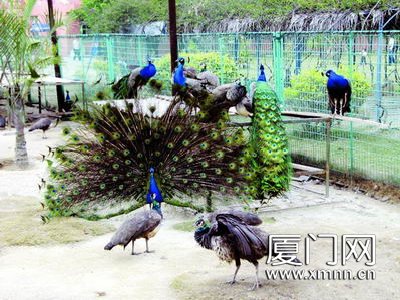 昨天下午3点,记者来到海沧野生动物园。在珍珠鸡和孔雀合住的园里,数十只孔雀悠闲散步,不少雄孔雀一看到雌孔雀经过,就迎上前开屏,还不停抖动尾部羽毛,发出“噗啦啦”的声响。