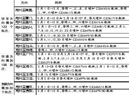 今报郑州讯 今年春运期间,南航在郑州新郑国际机场将新增340个航班(见右表),飞往热点城市。昨日,郑州新郑国际机场、南航河南分公司春运方案相继出炉,不仅新增了航班,对恶劣天气下有可能出现的旅客滞留情况也做了妥善安排。
