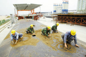 据了解,在厦深高速铁路的建设过程中,潮汕站将作为铺轨基地使用,车站填方高度达到5至7.5米。“潮汕站所处区域,软土不仅深厚,而且高含水量,地下淤泥最深达20多米,必须特殊加固。目前潮汕站已经完成软基处理预应力管桩100万米,管桩加固最深达44米,完成土方填筑50万方。”姜振福信心十足地说,“按照目前进度,今年10月潮汕站将开始向两边铺轨,为全线通车奠定基础。”
