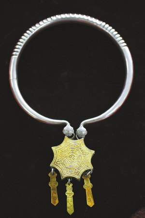 省收藏家协会曾组织人员奔赴海南少数民族地区采风,有幸寻到了数件海南黎族银饰。据介绍,海南黎族银饰物分为面饰、胸饰、腰饰以及手足饰品4大类。在面饰中又包括头饰、头冠、头箍、耳环等;胸饰包括各种长生锁饰、胸链等;腰饰主要包括腰链及腰间饰品;手足饰品则包括手镯、脚饰等。