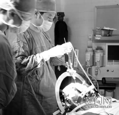 厦门市脑科中心厦门市第一医院神经外科是国内率先开展脑深部电刺激术治疗帕金森病的医院之一,技术经过努力探索已经完全成熟,而且是福建省及周边省份唯一的脑起搏器植入治疗中心,唯一能进行术后程控的医院。目前,该院已完成脑深部电刺激手术近20例次,术后程控180例次,手术量全省第一。