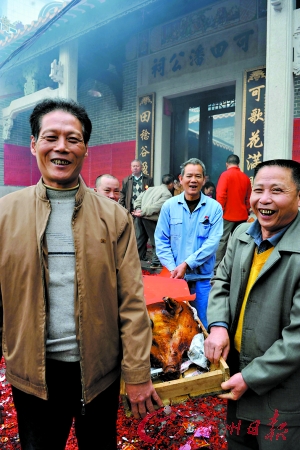 昨日,珠村重修的两座明清时代祠堂开光,珠村共邀请珠三角22条村的宗亲或老表,其中21条村是委派代表参加,而共有1200名村民的岐山则是“阖村统请”,岐山村也“比脸”有空村民全体出席。