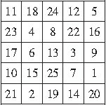 图由25个方格组成,任意排列1—25的数字。测量时,学生用手指按1—25的顺序依次指出其位置,读出声,老师在一旁记录所用时间。数完25个数字所用时间越短,说明注意力水平越高。结果发现,注意力集中的学生完成测试的平均速度为35秒,注意力分散的学生则平均速度为2分30秒,差异非常大,而整个年级里,学生注意力集中的离散程度也较为明显。