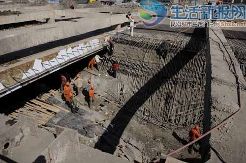 “在混凝土浇筑过程中,有一块30米长、8米宽的顶板发生塌陷。这只是施工过程中出现的一个小问题,我们自己会处理掉的,马上改进一些技术上的问题重新施工。”昆明元鼎建设发展有限公司的副总经理高兴介绍,发生坍塌的地方属于草海隧道LY17段,是他们公司在负责施工的。在施工的过程中,由于隧道下面的深基坑太深了,侧墙压力过大,造成顶板与侧墙之间出现了裂缝,混凝土就从裂缝里面泄漏,出现了局部失稳导致了塌陷。当看到局部出现混凝土泄漏时,工地上就立即停工,撤走了在上面的所有工人,所以没有造成人员伤亡。对在场的所有媒体记者,高兴一直强调,“这只是施工过程中出现的小问题!与昆明新机场桥梁垮塌是完全不同的两回事,机场桥梁是整块垮塌,而隧道顶板只是一种塌陷,给国家造成的损失是很小的。”