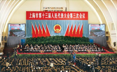 本报讯(记者姚丽萍)今天上午,上海市第十三届人民代表大会第三次会议在上海展览中心中央大厅隆重举行。