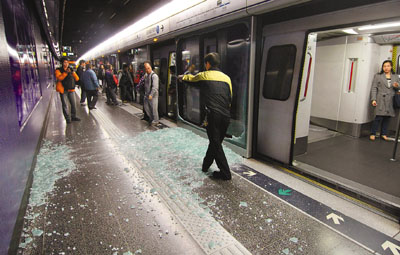 港铁月台玻璃幕门突然爆破 原因仍在调查中(图)