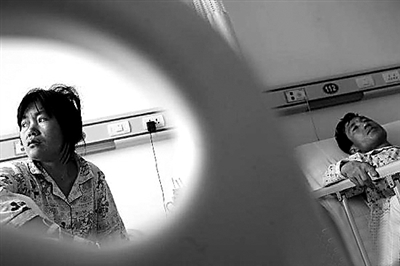 上图:2008年5月11日,铊中毒的施春香和其丈夫。