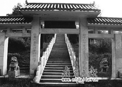 记者驱车来到衡阳市衡南县硫市镇太阳村大树组,很容易就发现了网帖中的那个“豪华墓地”,如果在远处眺望,还会以为这是个建在半山腰上的祠堂,在这个规模跟烈士墓一般大的地方,进门的牌坊顶上是“刘氏陵园”四个大字,和网上照片没有任何区别。碑文末尾还有说明修建该墓者的身份为墓主的儿女媳妇等。记者通过当地村民的介绍,找到墓主丈夫刘某的老屋,一位贺姓村民告诉记者,刘某曾在衡阳市计生委工作,现已退休。