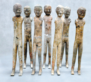 “这些陶俑与汉阳陵的陶俑相似,大约60厘米高。”张仲立说,现在虽然看着陶俑都是赤身裸体,没有胳膊,但在胳膊处都留有孔,而在坑内专家们还发现了盔甲的残片,可见这些陶俑原先都穿有各种各样的衣服。而在坑内,出土了大量的兵器铜镞、刀、箭等,还有十分少见的6金6铜的青铜钟,还有做饭用的陶釜。