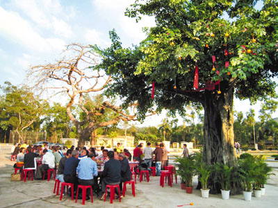 大埔林村新春大变身 仿真许愿树可掷宝牒(图)
