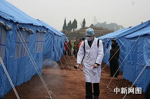 防疫人员正在安置点工作。中新网发 霍潺 摄