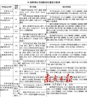 南方日报讯(记者/欧雅琴)昨日,市道路运输管理局下发《关于优化重组部分跨镇公交线路的通告》,确定在3月29日前调整完毕12条跨镇公交线路。