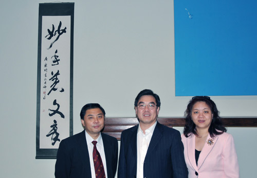 前不久,中国驻芝加哥总领事黄屏夫妇一行,特别参观了丹佛艺术博物馆中国馆,对这幅书法对联给予赞赏。