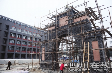 即将竣工远看“牌坊”有西洋味