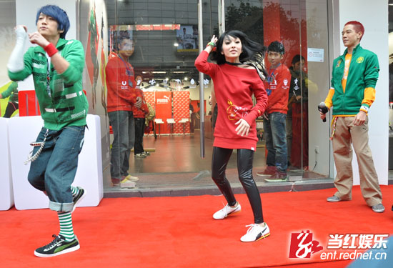 红网2月4日讯(记者 高芹)自从2008年PUMA与大嘴巴合作《国王皇后》MV之后,大嘴巴活泼,健康的形象给人留下深刻的印象。2009年从提案到实际的代言内容洽商了一年之久,终于敲定2010年亚洲区全品牌代言人---大嘴巴。2月4日下午,PUMA携手代言人——台湾流行嘻哈组合“大嘴巴”,出席长沙黄兴路步行街专卖店盛装开幕活动。黄兴路步行街上人头攒动,数千的长沙市民将PUMA店铺围绕得水泄不通。