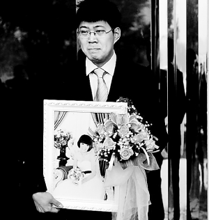 4日早晨8时30分,他手捧鲜花和她的单人婚纱照,在亲人的簇拥下上了她之前借来的豪华敞篷跑车。车子的目的地:殡仪馆。9时45分,两家人在殡仪馆门口合影。望着大喜的日子,他却独自手捧照片和鲜花,现场不少人流下了眼泪,新娘的母亲几度昏厥。