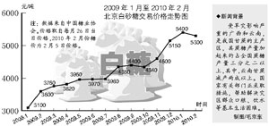 因甘蔗主产区广西和云南遭遇干旱,蔗糖产量减产,目前北京市场的白砂糖价格较2009年同期上涨了七成多。