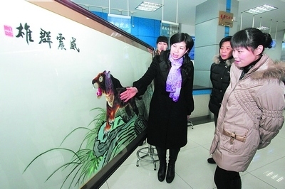 昨日,中国工艺美术大师、湘绣大师江再红将自己一幅珍藏了20多年的湘绣作品《威震群雄》赠送给文艺路街道韭菜园社区,以增添虎年的喜气。据了解,该作品创作于上世纪80年代,长2米、宽1米。这是江再红(左一)在向社区工作人员介绍绣品工艺。石祯专 张厚时摄影报道
