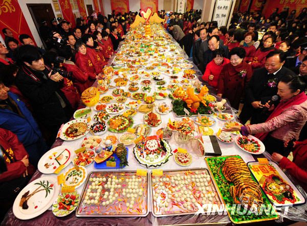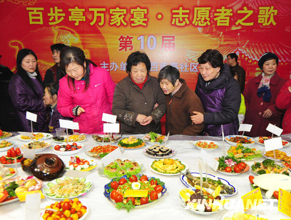 当日,武汉百步亭社区举办第十届“万家宴”,社区里近万个家庭每家做一道菜,组成万道菜品。“万家宴”是武汉百步亭社区组织的活动,从开始的“百家宴”“千家宴”到“万家宴”,已经连续举办了十年,成为该社区的传统。新华社记者程敏摄