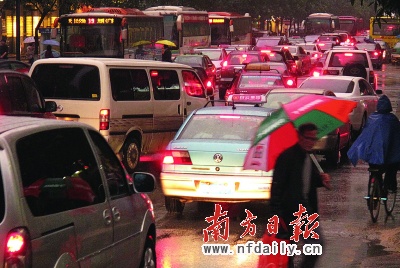 昨日早高峰数据显示,体育东路南北向直行的车流量相对较大。据交通部门分析,主要是因为目前正处于春运时期,大量车辆途经体育东路去火车东站接送旅客;其次,天河东路由于猎德工程围蔽尚未解除,造成南北向通行能力降低,大量车辆转移到体育东路。