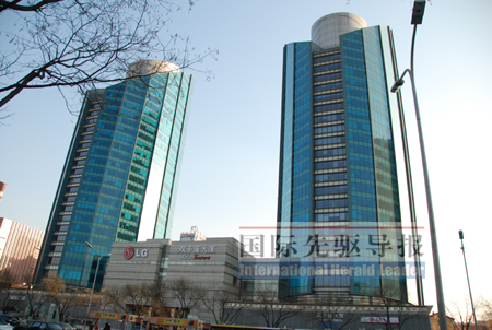 《国际先驱导报》记者邓媛、方辉发自北京 正午阳光下,也许因为披了层蓝绿相间的“外衣”,座落在北京东长安街上的双子座大厦看上去静谧且庄重,仿佛一墙之隔,真能把街道上车来车往的嘈杂一以盖之。
